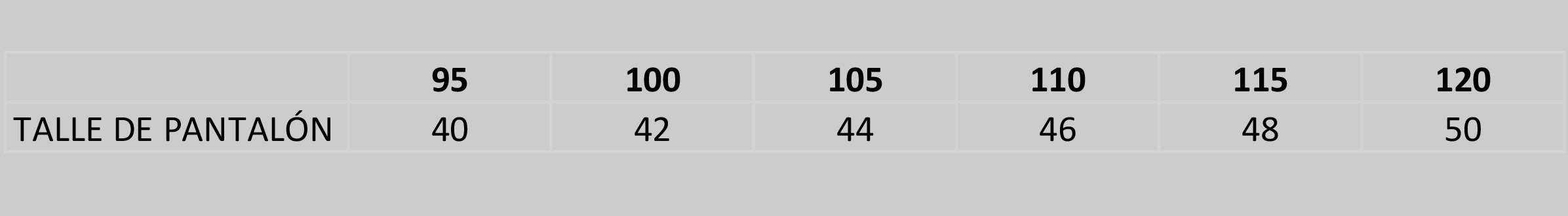 Tabla de medidas