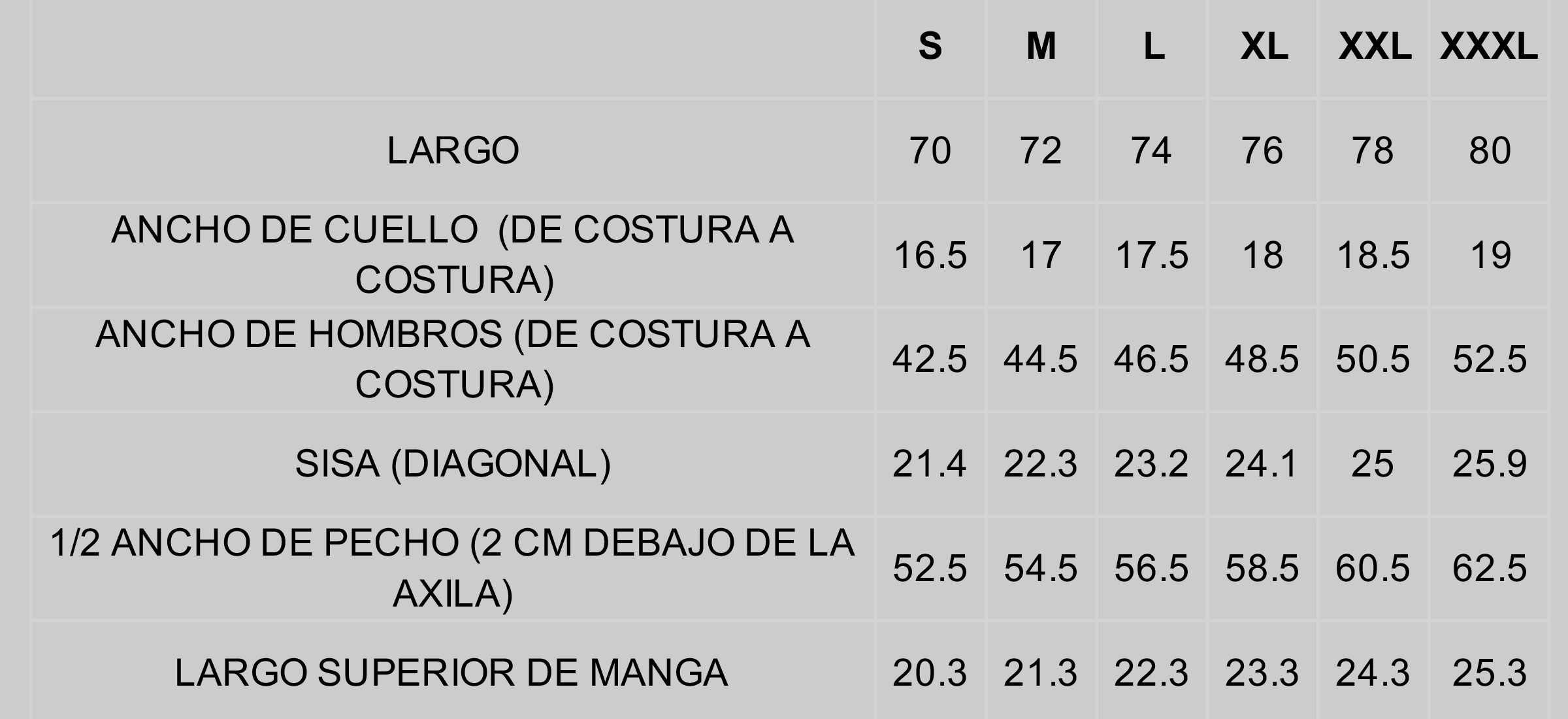 Talles: S, M, L, XL, XXL, XXXL